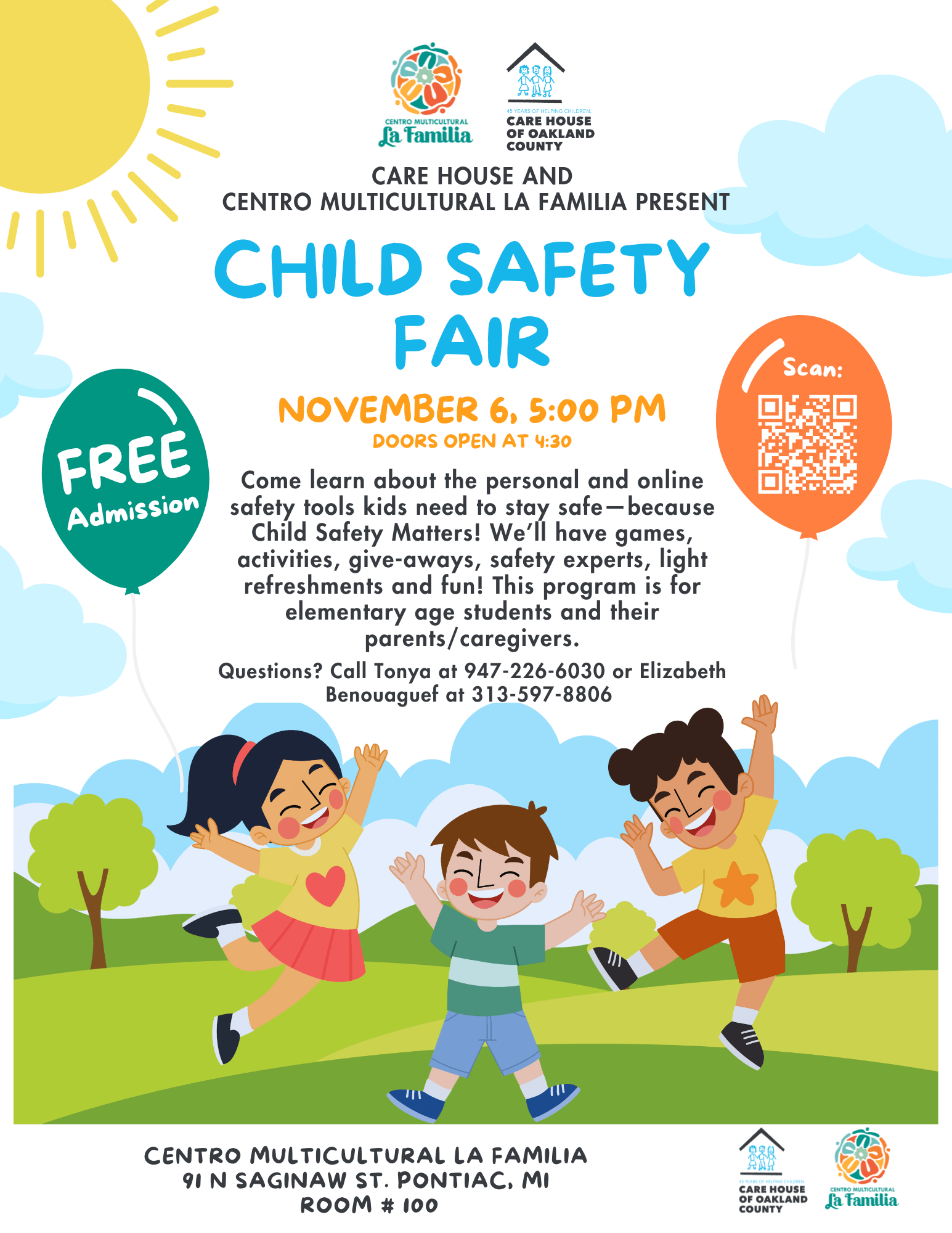 Join us at the Child Safety Fair on November 6 at 5:00 pm at Centro Multicultural La Familia.