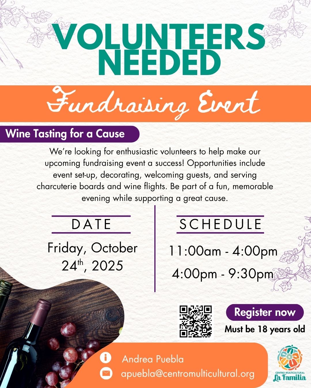 Activities: We’re looking for enthusiastic volunteers to help make our upcoming fundraising event a success! From setting up and decorating, to welcoming guests, serving charcuterie boards and wine flights, and wrapping up with clean-up—there’s a role for everyone.